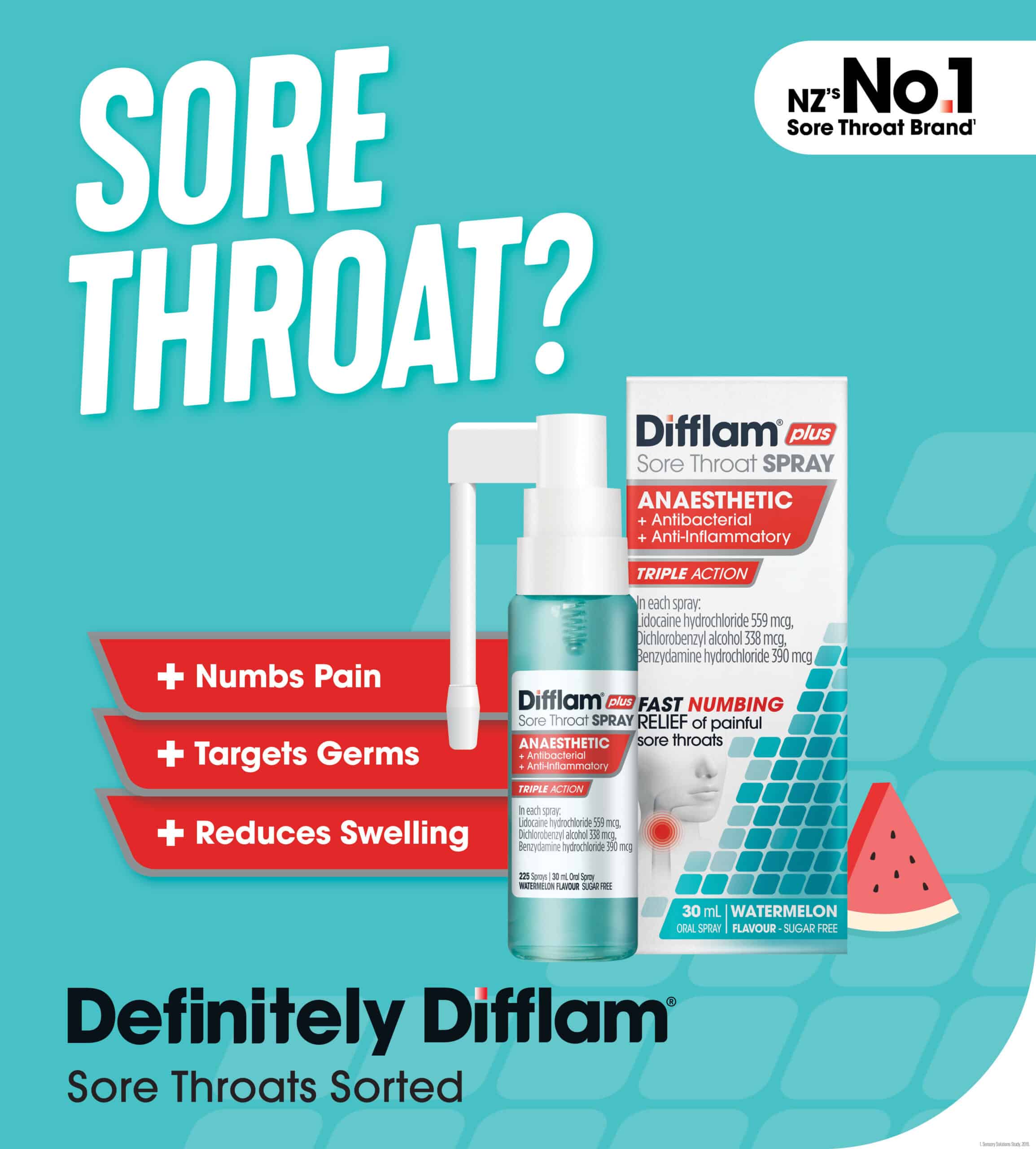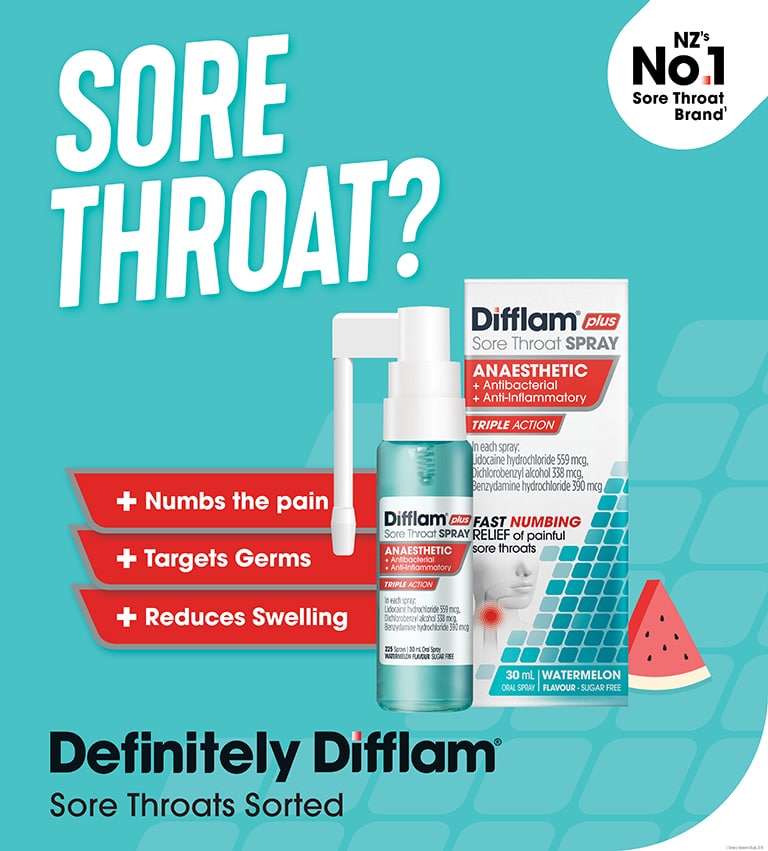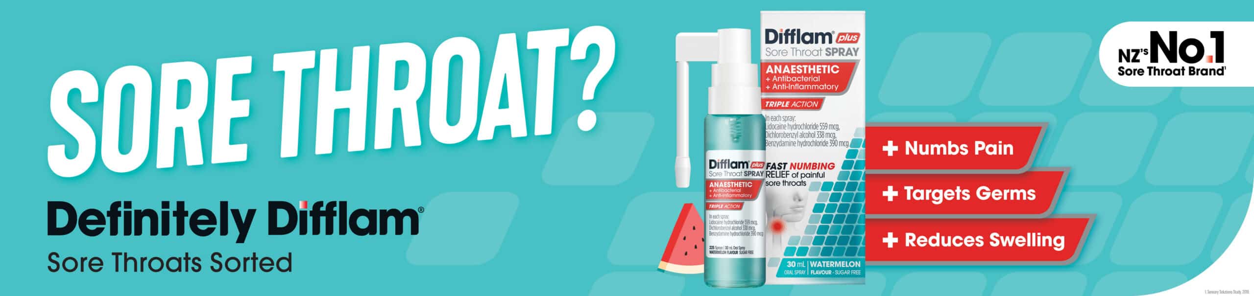 Experience the Difflam Difference for effective relief for your sore throat. Find out why Difflam is New Zealand’s #1 pharmacy throat brand†!